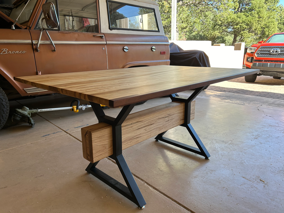 Finished with Rubio Monocoat--a hardwax finish. Steel legs. 40"x60"
